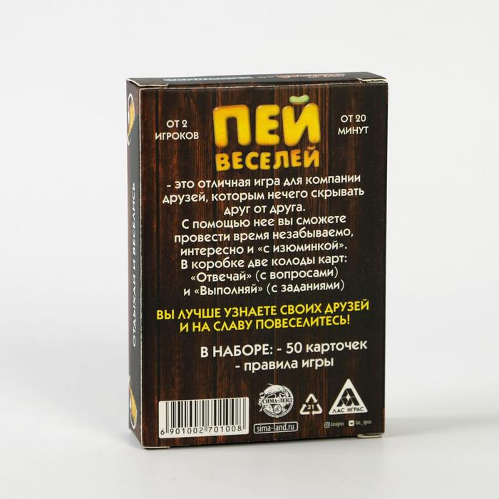 Купить игра для компании "пей веселей" 50 карт от 180 руб. с доставкой до пункта выдачи в Спасск-Рязанском. Интернет магазин ДекаМаркет. Оплата при получении.
